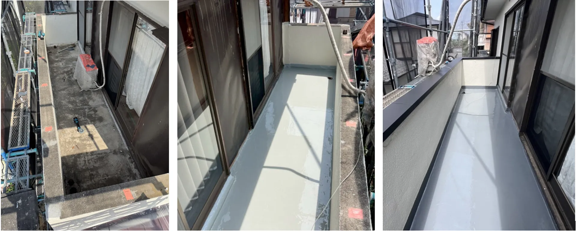 古くなったベランダの防水+再塗装を施工したので暫く安心+気持ち良く暮らせます♪